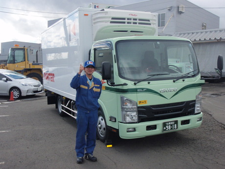 冷凍車を使用し、冷蔵・冷凍食品を札幌市内および近郊のお店や飲食店、問屋さん、各センターなどへ配送する業務です。